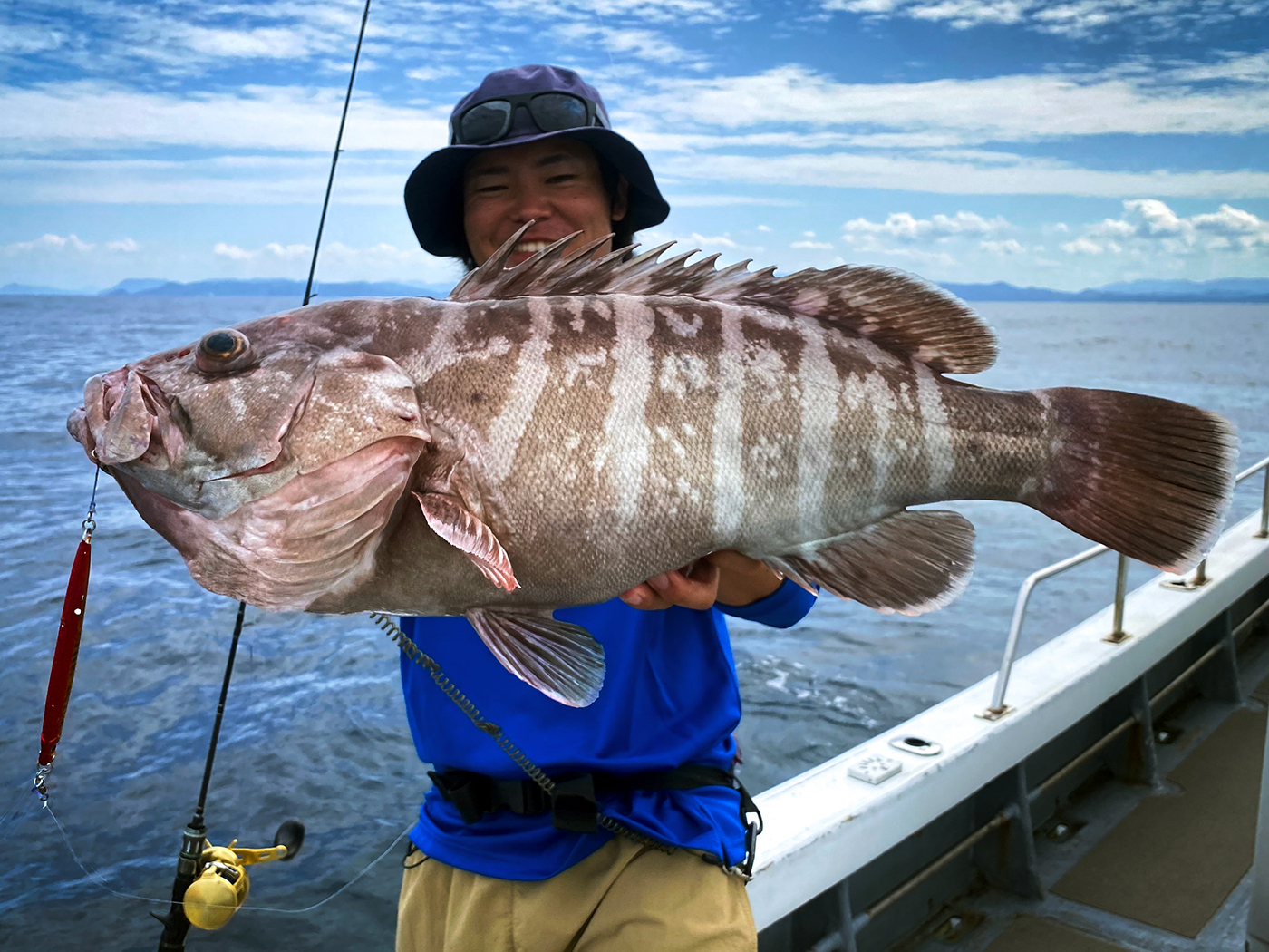 2WAYで使える個性を持つことで「グローカラーでボトムをソフトサイドでスローに誘ってイカを食べてるハタを狙ってみよう」のように、