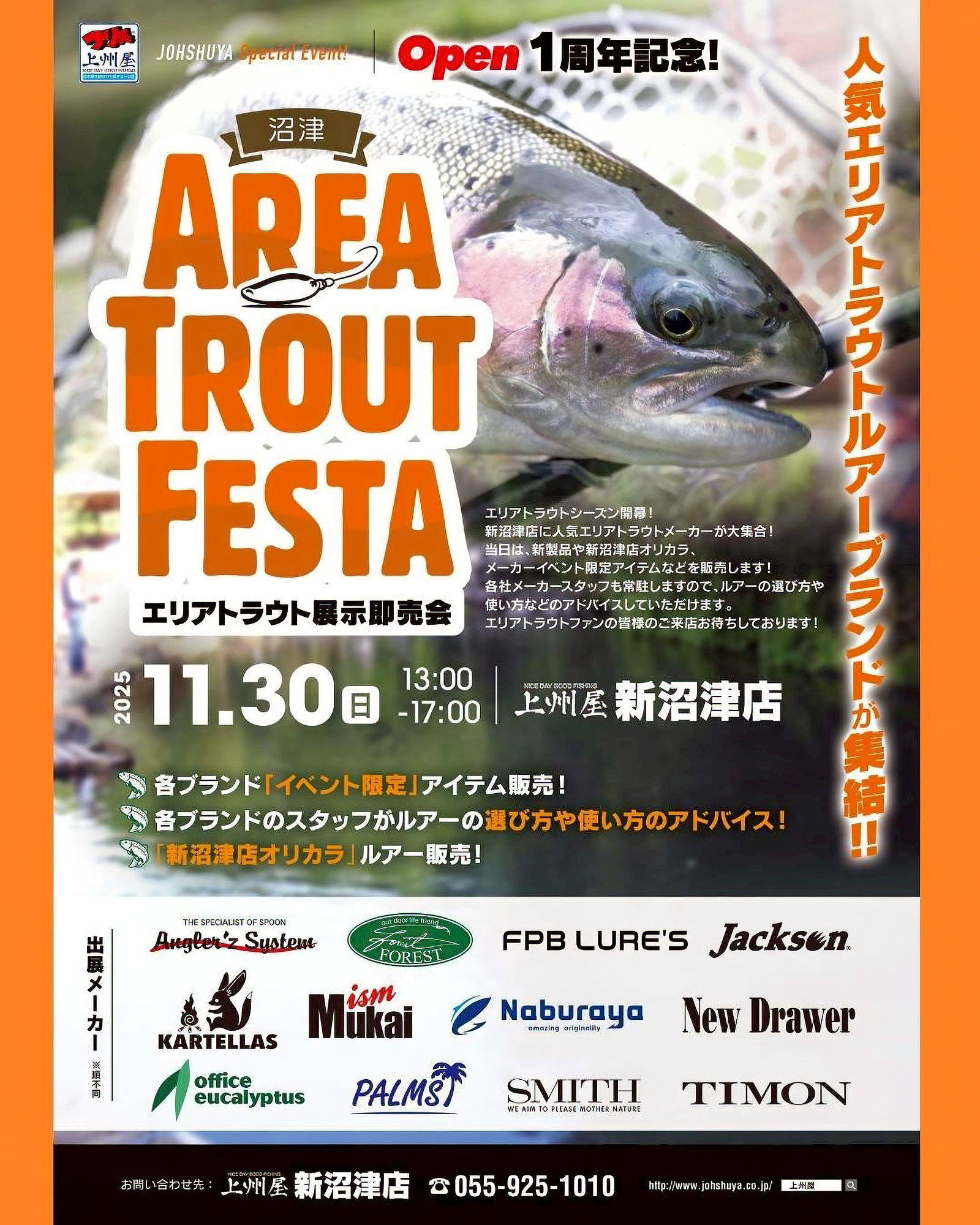 イベントのご案内 - 「上州屋新沼津店 AREA TROUT FESTA エリアトラウト展示即売会」出展のご案内