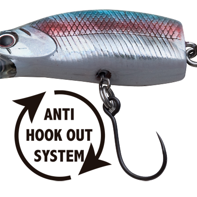 前後にセパレートしたボディが特徴のトゥイッチイング&ドリフトシンキングミノーベアトリス!!フロント側の固定低重心のウエイトポジションが安定した姿勢とアクションを実現。最大の特徴はセパレートされたテール側が抵抗となり移動距離の少ないヒラ打ちが可能なこと、ロッドワークで細かなヒラ打ちさせながらドリフトで目的のレンジを流下させ探る。フォーリング中での不規則な動きの中でのバイトが多いのも特徴。また、フッキングからランディング時まで、ファイト中に発生するバレを軽減する“ANTI HOOK OUT SYSTEM”をベリーのフックアイに登載。オープンでフレキシブルなジョイント方式はよりナチュラルでベイトフィッシュライク、クイックでイレギュラーな動きを演出。トゥイッチングミノーとして新たな世界を切り開きます。