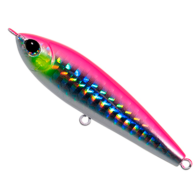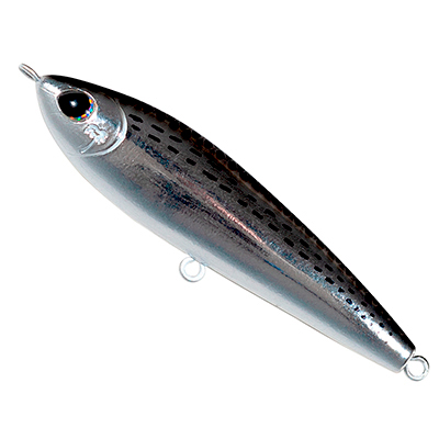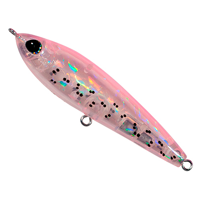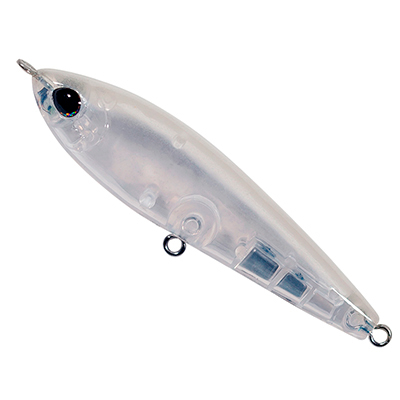 ロッドワークに対する高いレスポンス。それでいて多少ラフな水面であってもエラーしにくい水絡みのバランスを備えます。頭を大きく回転させるドッグウォークもちろん、やや長めのジャークではワイドウォブルを伴うダイブアクションも生み出します。ベイトが見られる状況下でのサーチはもちろん、ストラクチャーにタイトに着いたターゲットに対しても、最小限の移動距離で最大限のサピールを可能にする高レスポンスが武器になります。また、ポッパーにスレたクロダイにも効果的です。
