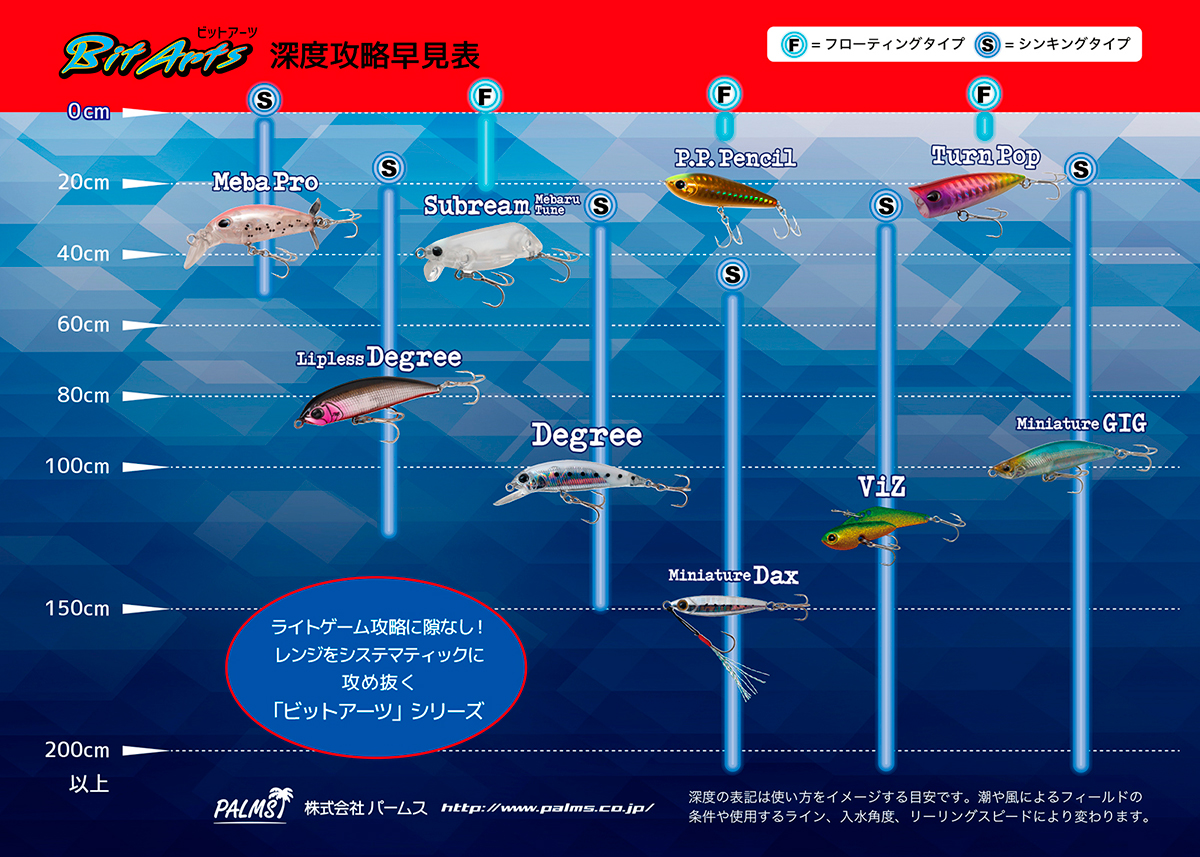 | TP-50F | 50mm | 3.9g | Floating | 8色 | Hook Size:#10 | 本体価格 ¥1,200 |