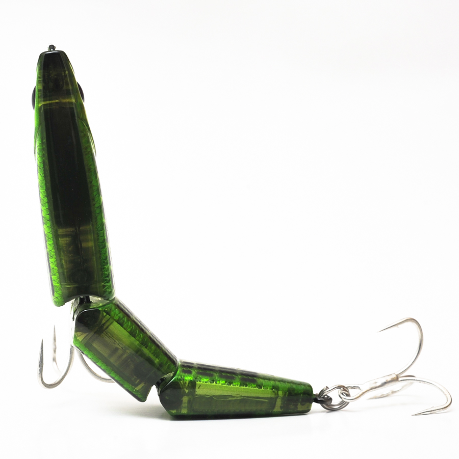 カレフ95ジョインテッドが目指したのは、「3連結ジョイントボディによる艶めかしさ」「ストレスのない飛距離」さらに「レンジコントロール性能」の融合です。スラントヘッドを備えた3連結ボディは、各セクションがあたかも一体化したかのような有機的アクションを発揮。ベイトフィッシュを捕食しているフィールドから、バチを意識したターゲットまで魅了します。また、ジョイント系ルアーにありがちな飛距離への不満は、各ボディセクションのジョイント角をあえて狭く設計し空気抵抗を軽減することで解消。カレフならではのレンジコントロール性能が幅広いシーンでの活躍を約束します。
