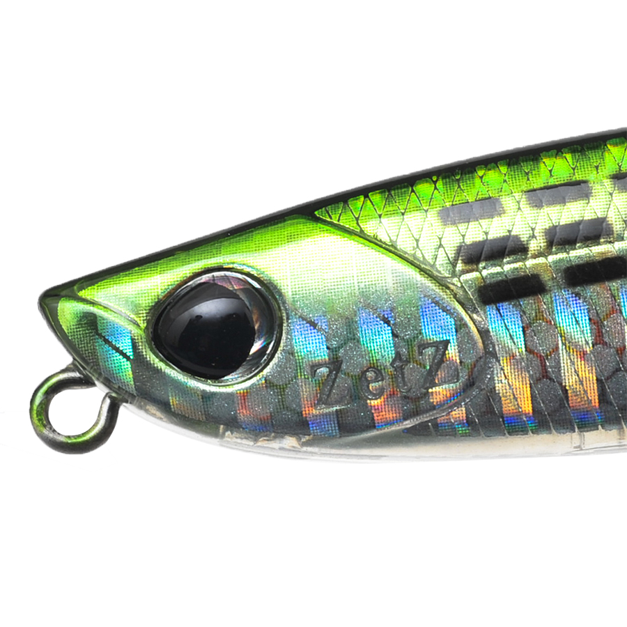 立ち上がりの良さとベイトライクな泳ぎを生みだすために最適な位置にセットしたラインアイと水流をボディーへ受け流すスラントヘッド形状がシンキングペンシルならではのナチュラルなアクションと波動を生みだします。