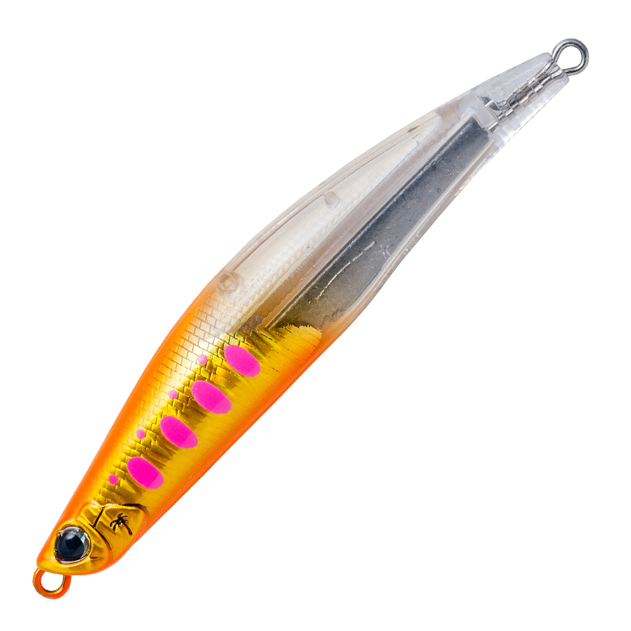 発売と同時に数多くの実績を刻んだGIG海サクラスペシャルに、90mmボディのダウンサイジングモデルが登場します。一見すると110mmモデルを踏襲したボディは90mm専用ディメンションを採用。単なるダウンサイジングに止まらず、求める性能を追求したスペックを備えます。背中のエアボリュームを上げたハンプバックボディがもたらす豊富な背中の空気室と、対照的な超低重心ウエイトを配置することで実現した、ロールを交えたスラロームアクションが最大の特徴です。低速域からレスポンス良くアクションを引き出し、さらにリトリーブスピードを上げることでロールとアクション軌道をやや強めてサクラマスにアピールします。逆風下でも圧倒的な飛距離を生み出す仕様はGIGならでは。110mmサイズとほぼ同等の飛距離を叩き出すスペックです。対鮭稚魚パターン、オキアミ喰いへの対応など、シビアな状況を打破するための90mmモデル。専用カラー2色を加えた豊富なカラーラインナップで海サクラを迎え撃ちます。