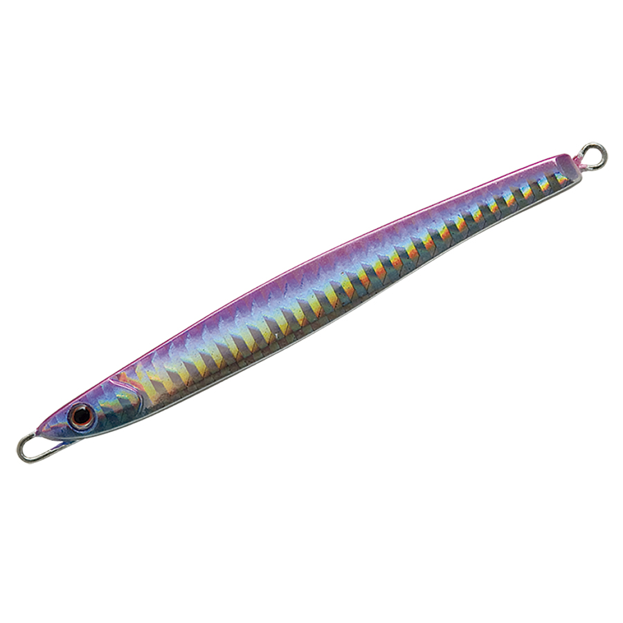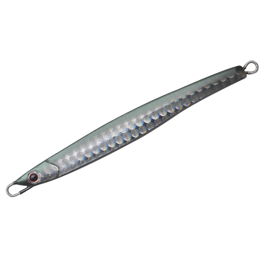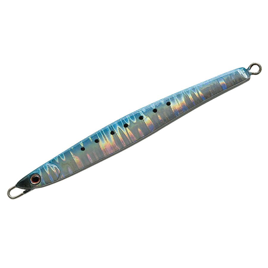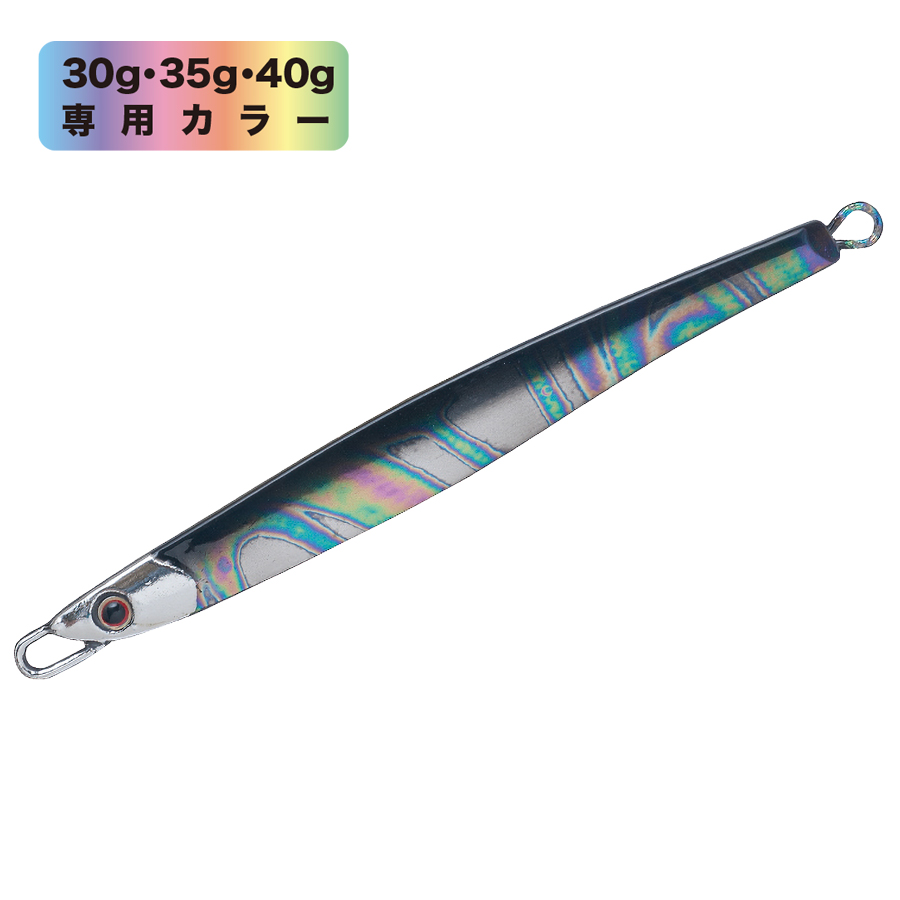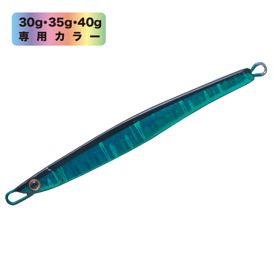 ショアからの海アメ、海サクラ、青物のために開発したロングディタンスキャスティングジグ。何よりも遠投性能を追求したテールヘビーのフォルムは過酷な状況下であっても常に安定した飛行姿勢を保つように設計されています。 フラットな側面と先端からテールにかけてのテーパーが適度な引き抵抗をアングラーに伝え、テールを振りながらスローからファーストまであらゆるスピードで安定したアクションをみせます。フォーリングではややテール方向へスライドしながらロールしフォール時にバイトを誘発します。また、リフト&フォールや、激しくジャークする場面でも抵抗が少なく、アングラーにパワーロスさせないのでイメージどおりのジャーキングが可能。小さなベイトを意識した細身のシルエットの30gからアゲインストをも切り裂く55gの6サイズに厳選の13色を用意しました。