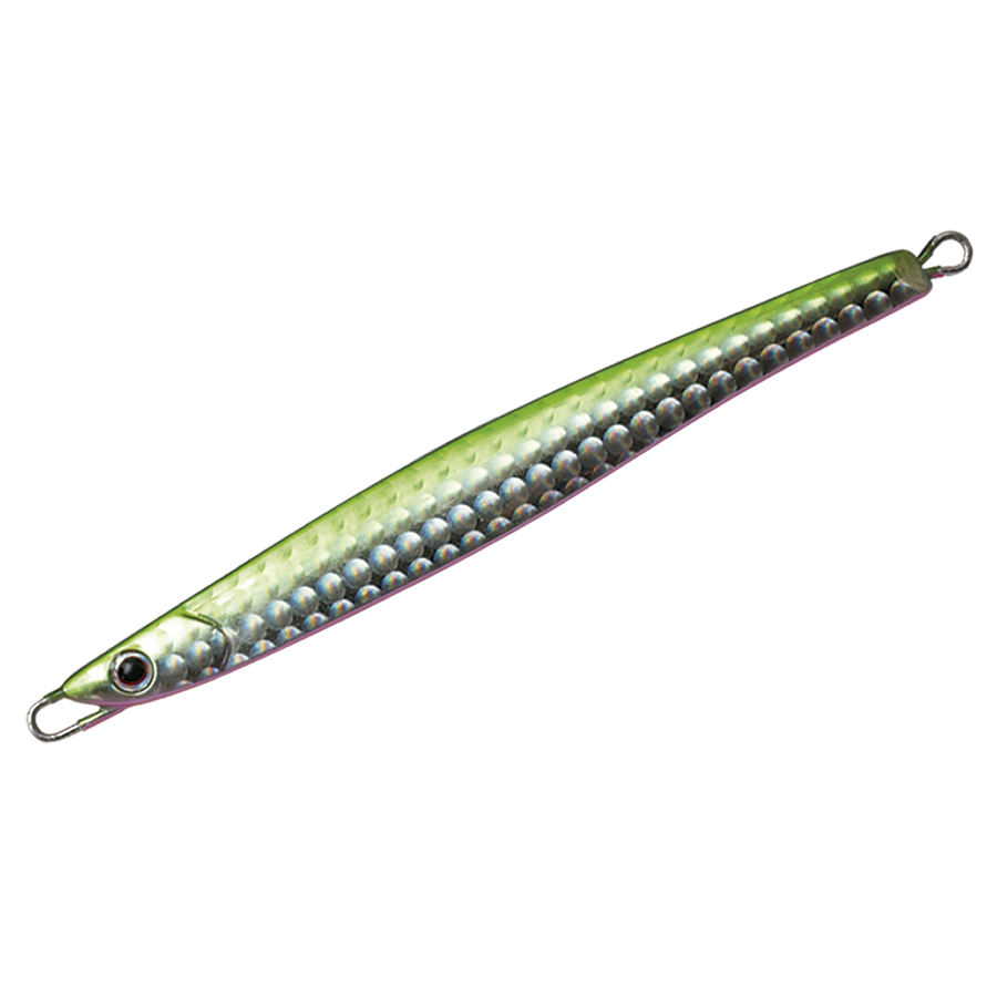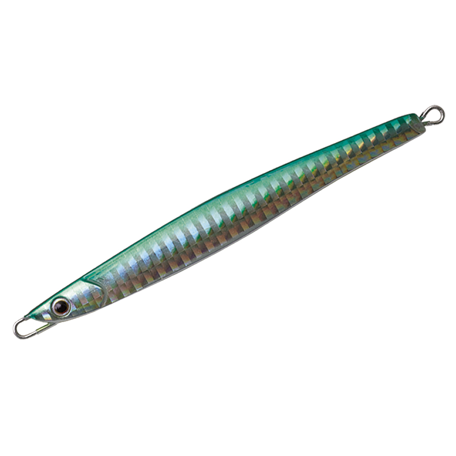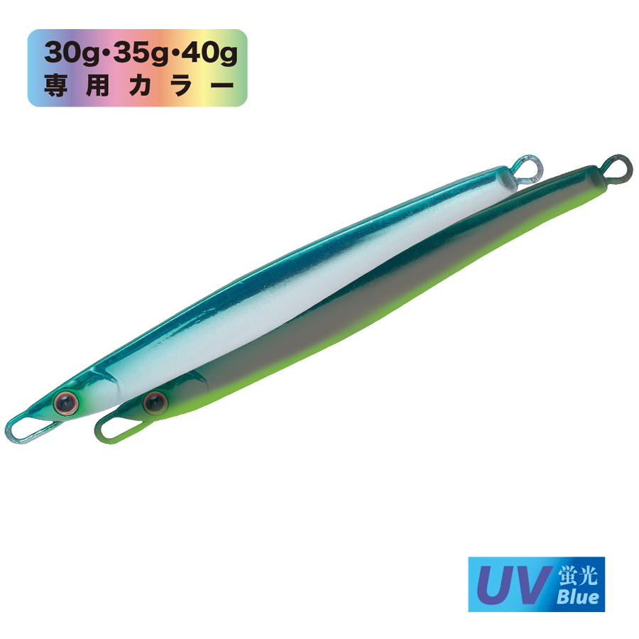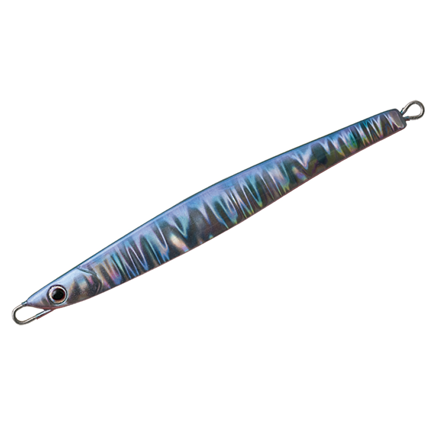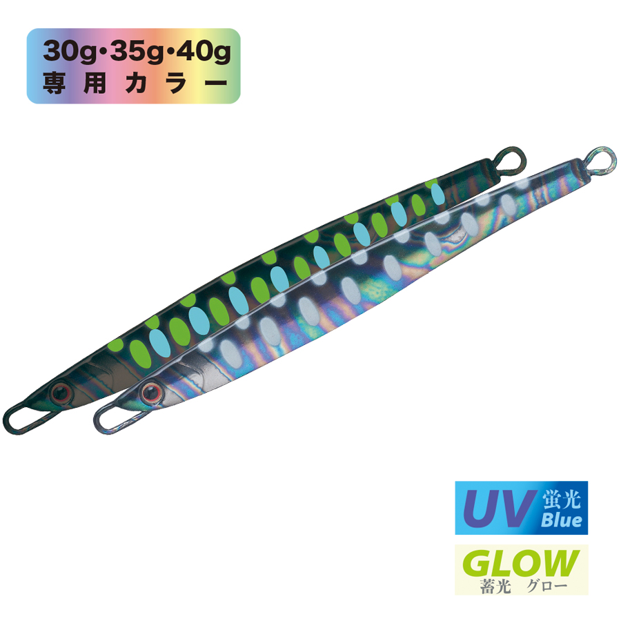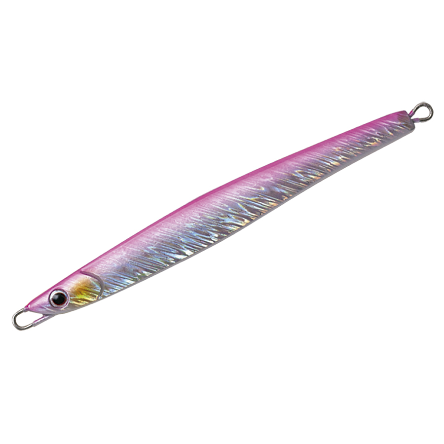 ショアからの海アメ、海サクラ、青物のために開発したロングディタンスキャスティングジグ。何よりも遠投性能を追求したテールヘビーのフォルムは過酷な状況下であっても常に安定した飛行姿勢を保つように設計されています。 フラットな側面と先端からテールにかけてのテーパーが適度な引き抵抗をアングラーに伝え、テールを振りながらスローからファーストまであらゆるスピードで安定したアクションをみせます。フォーリングではややテール方向へスライドしながらロールしフォール時にバイトを誘発します。また、リフト&フォールや、激しくジャークする場面でも抵抗が少なく、アングラーにパワーロスさせないのでイメージどおりのジャーキングが可能。小さなベイトを意識した細身のシルエットの30gからアゲインストをも切り裂く55gの6サイズに厳選の13色を用意しました。