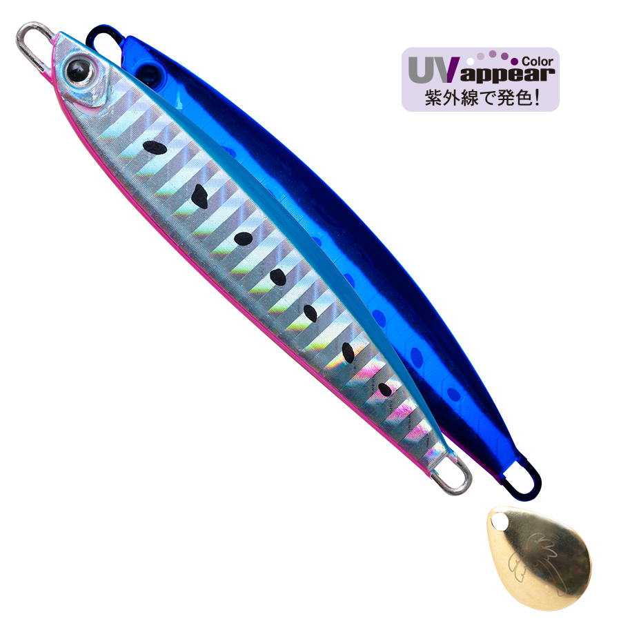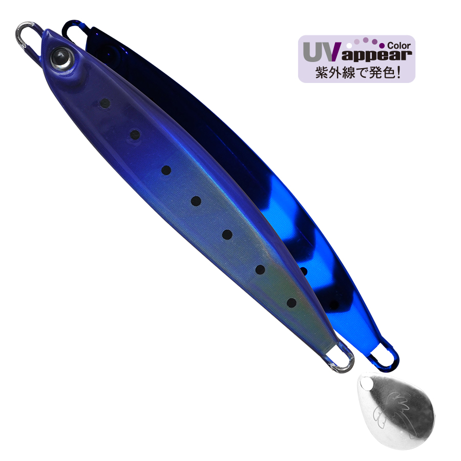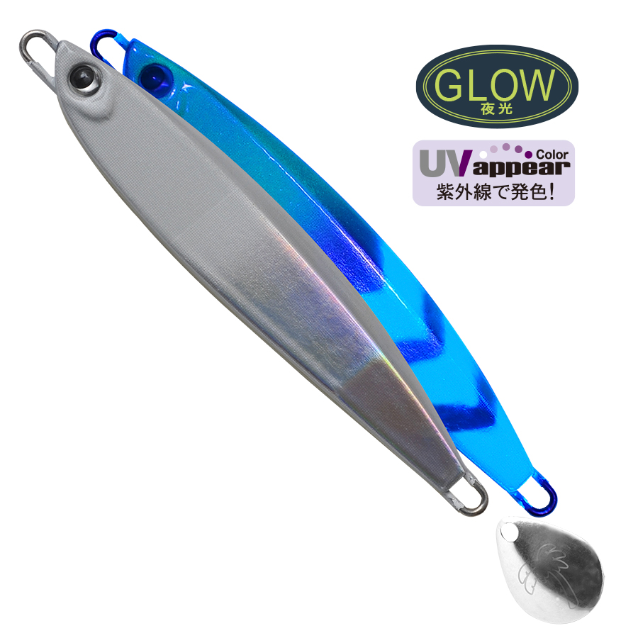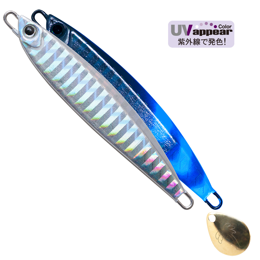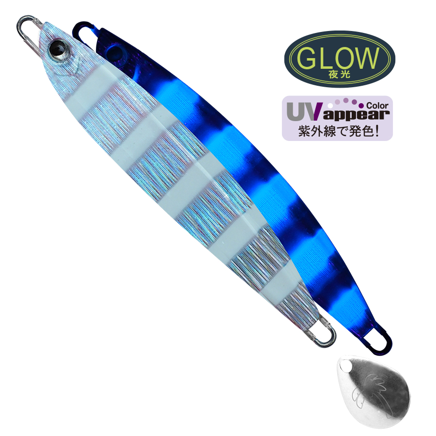 各地に広がりを見せるブレードジグを使用する全ジギングゲームに、「ヘキサーハーセン」をブレードチューン&専用カラーを身に纏った「ヘキサーB」。 ハーセン譲りの安定した飛行姿勢や素早いフォールはそのままに、ただ巻きでブレードが回転し、コンパクトなシルエットがターゲットのバイトを誘発。太軸のシングルフック装着により大型狙いも安心。高速巻きにも対応することで、巻き速度のコントロールによる更なるアピールも可能。ショア、オフショア問わず、魚種も問わず、様々なターゲットに向けて使える事が「ヘキサー B」の魅力です。