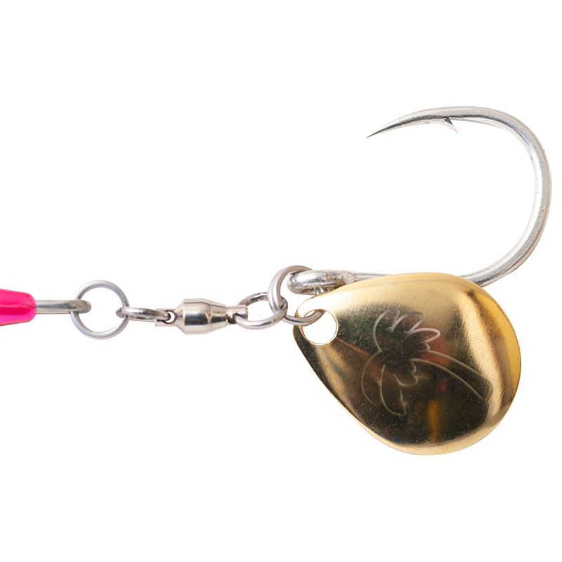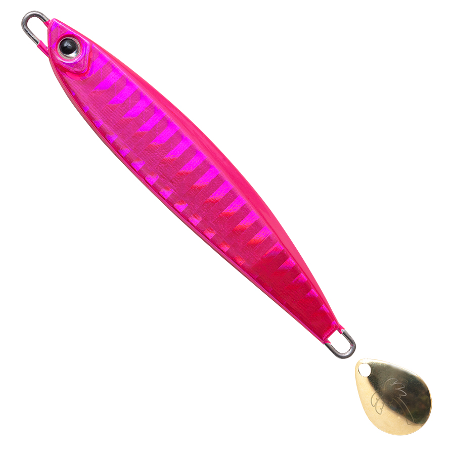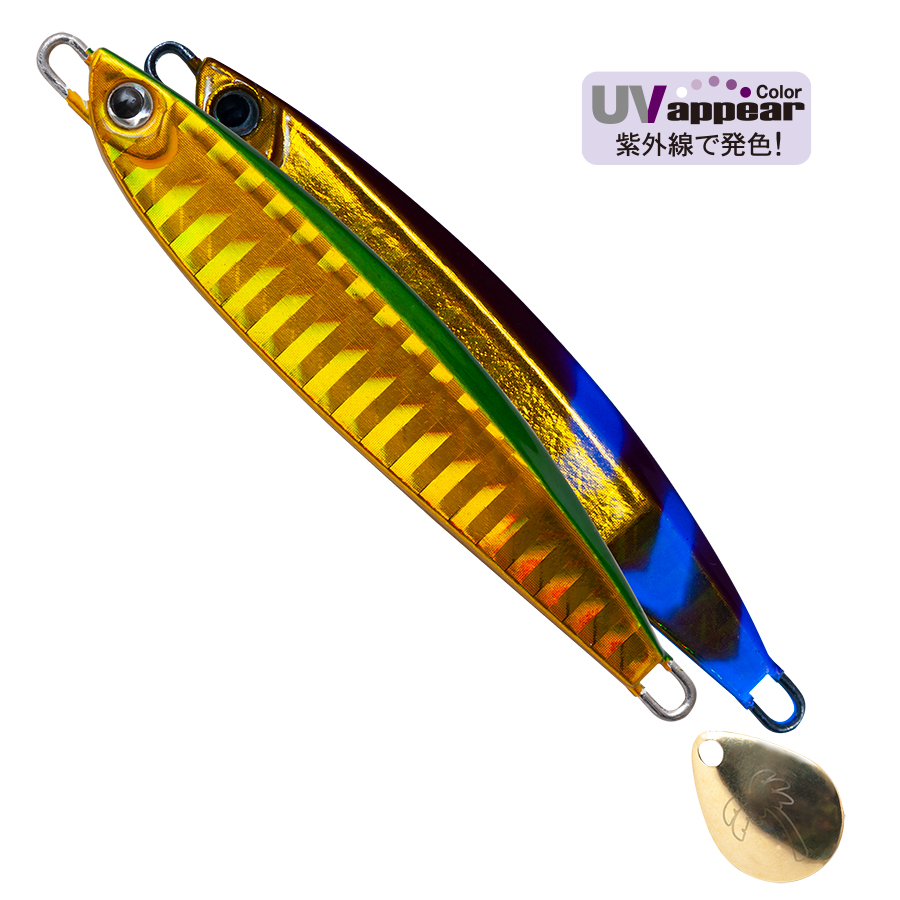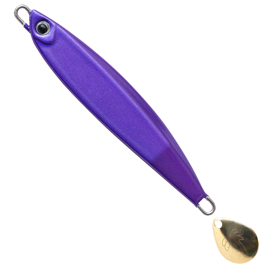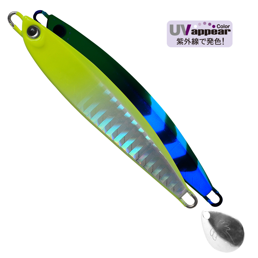 各地に広がりを見せるブレードジグを使用する全ジギングゲームに、「ヘキサーハーセン」をブレードチューン&専用カラーを身に纏った「ヘキサーB」。 ハーセン譲りの安定した飛行姿勢や素早いフォールはそのままに、ただ巻きでブレードが回転し、コンパクトなシルエットがターゲットのバイトを誘発。太軸のシングルフック装着により大型狙いも安心。高速巻きにも対応することで、巻き速度のコントロールによる更なるアピールも可能。ショア、オフショア問わず、魚種も問わず、様々なターゲットに向けて使える事が「ヘキサー B」の魅力です。