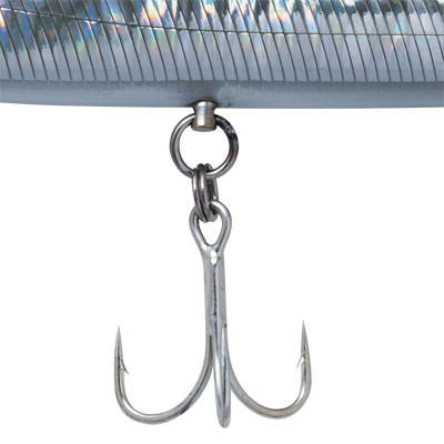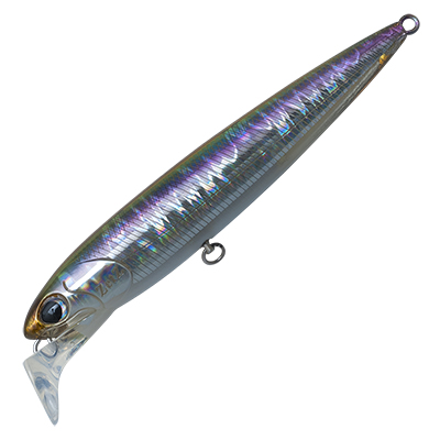 カタクチイワシの特徴のあるフェイス、フォルムをシンプルに表現、透明感を意識したフィニッシュでリアルさを演出しました。レベルフォーリングにこだわった固定重心ボディにスローからミディアムファーストリトリーブまで対応するオフセットリップを装着、ローリングアクションが鈍い輝きを発生させます。ベリーにはローリングスイベルを装着しフックアウトを大幅に軽減します。