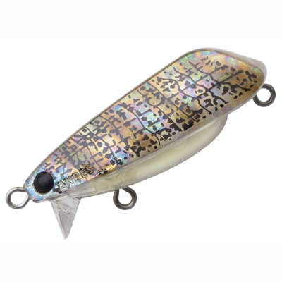 フライアングラーでもある和田光哲氏のイメージをインセクトルアーとして形にしました。大型の水生昆虫ヒゲナガカワトビゲラのアダルトの形状はもちろん、泳ぐ、滑走するといった状態をイミテートした新感覚のスイミングミノー。ヒゲナガが羽化、あるいは産卵する時に激しく動き回るタイミングでサーフェス、サブサーフェスをダウンクロス、ダウンで狙うと威力を発揮、水面と水平の浮き姿勢、リップはボディを大きく動かすというより、水を確実に掴み水面直下をスイミングすることを目的としています。基本的なフックセッティングはテールに一本、これは渡良瀬川C&Rのようにバーブレスシングルフック一本のレギュレーションにも対応できるセッティングです。アクションはほぼ動かないストレートスイミング、スピードを上げると僅かにバイブレーションを起こします。小さなボディの中に秘めた浮力を生かした浮き上がりとのコンビネーションを水面というサーフェスフィルムを利用して相手を欺くのはスリリングです。ヒゲナガが発生する時期は短く、偏っているかもしれませんが、それだけに刺激的なシーンを約束してくれるはずです。