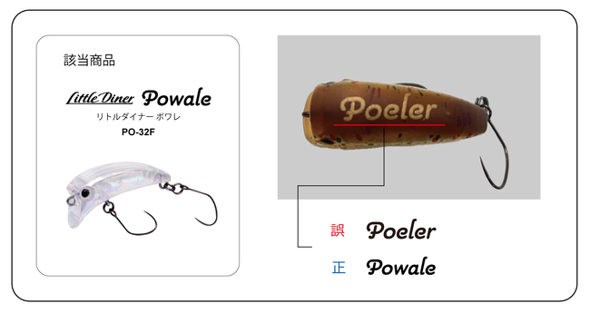 開発段階で使用していた名称「Poeler」と 誤って印字されている個体が確認されました。