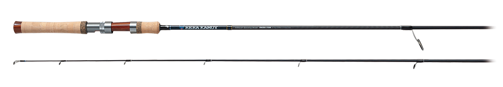 抜群のキャスティングスピードを誇り、スプーンやミノー、ジグを駆使してサクラマス、ニジマス、本流イワナなどを狙うのに最適なモデルと言える。ウェーディングやボート上など長時間ホールドしなければならないシチュエーションでも持ち重りが軽減されたブランクは大きなアドバンテージ。強靭なミディアムパワーのブランクはディープ系の抵抗の大きなルアーを引き倒すことも可能です。 - 7ft.3inc. 2pc. Power:M 4-13g Lures 4-10lb Line Rod Wt.119g 本体価格 ¥26,000